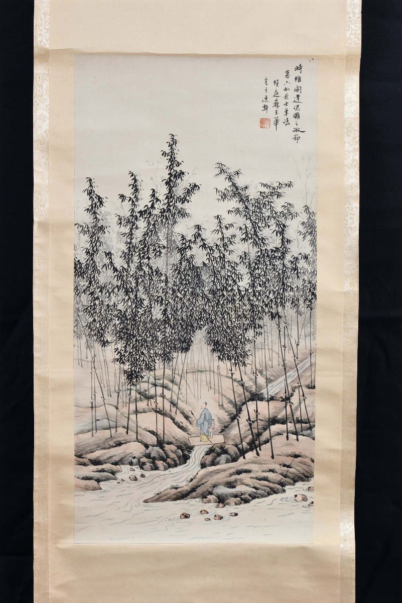 Dipinto ad inchiostro su carta di riso raffigurante Paesaggio, Cina XX secolo