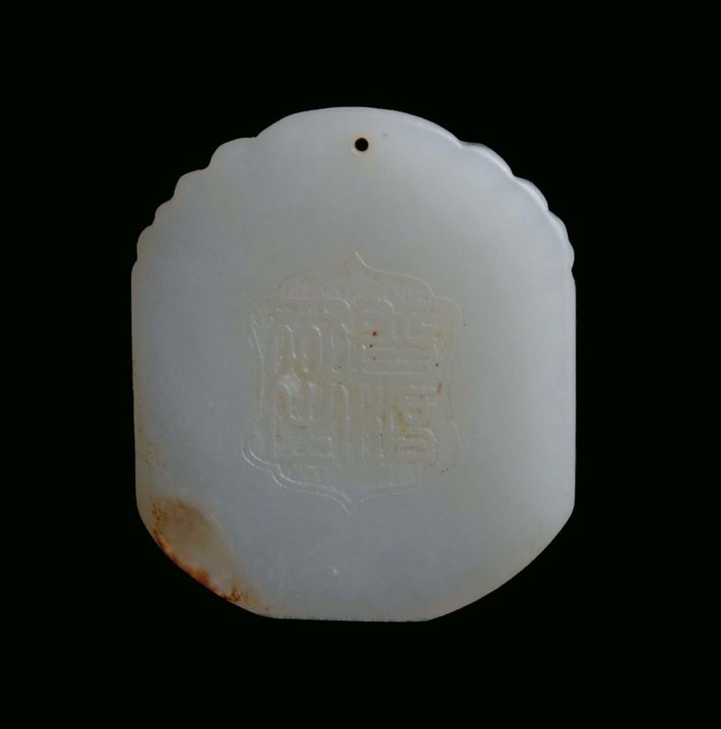 Placca in giada bianca raffigurante divinità orientale, Cina, Dinastia Qing, XIX secolo