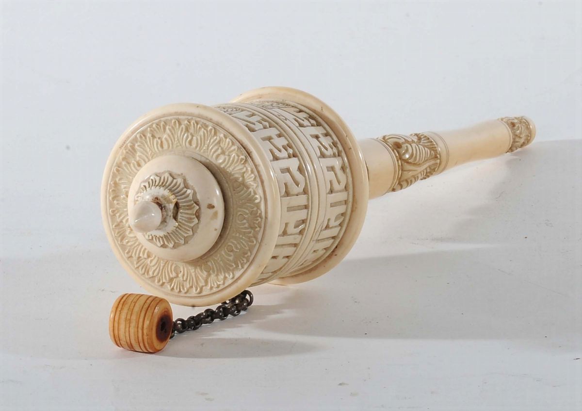 Ruota della preghiera in avorio e argento, Tibet, XIX secolo