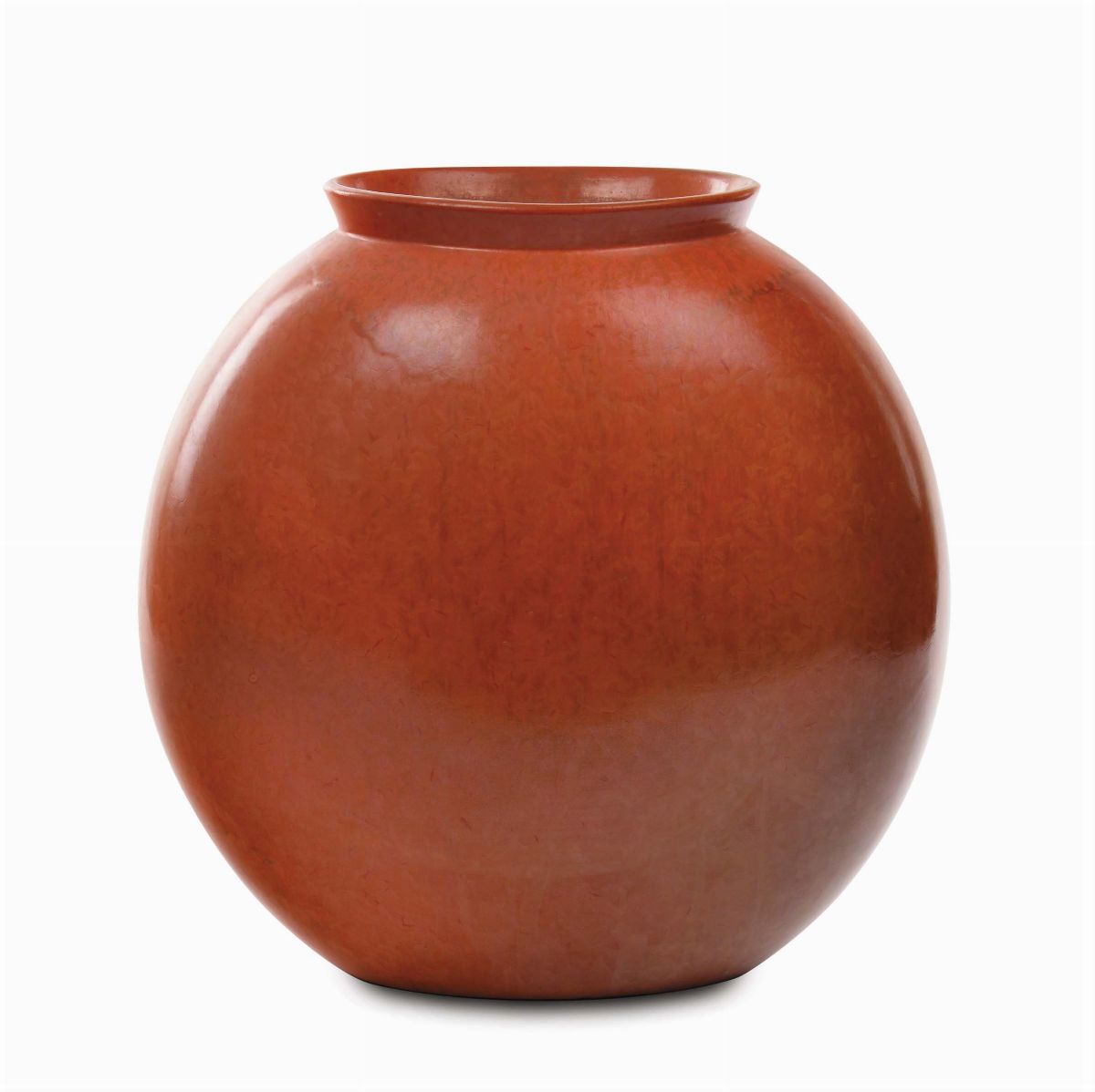 ceramica a colaggio in colore arancio. Marchio della manifattura sotto la base. 1939 circa, altezza cm 34,5