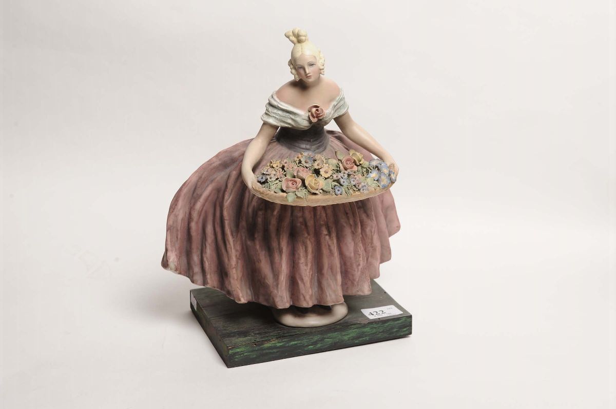 terraglia policroma. Sul retro della gonna inciso G. Cacciapuoti e incusso Made in Italy, 1930/40. Altezza cm 23