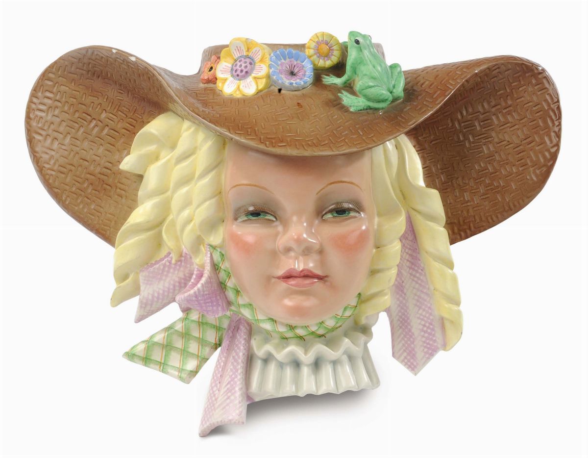 terracotta modellata a colaggio e parzialmente lavorata a mano, decorata in policromia. Sotto la base: Lenci Torino, made in Italy VIXII N. Sul fronte, impresso, Icnel