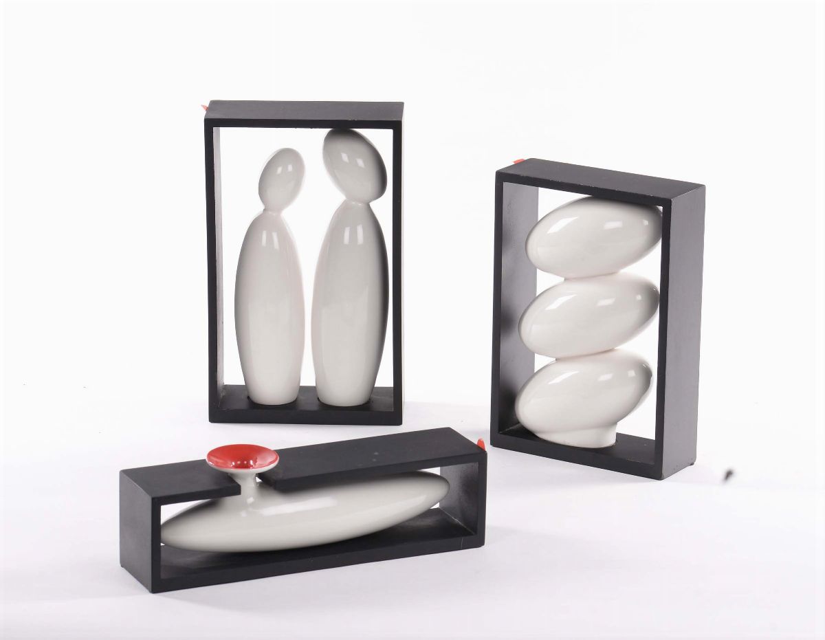 legno satinato nero e opaco e ceramica bianca lucida. Firmati e datati 1964