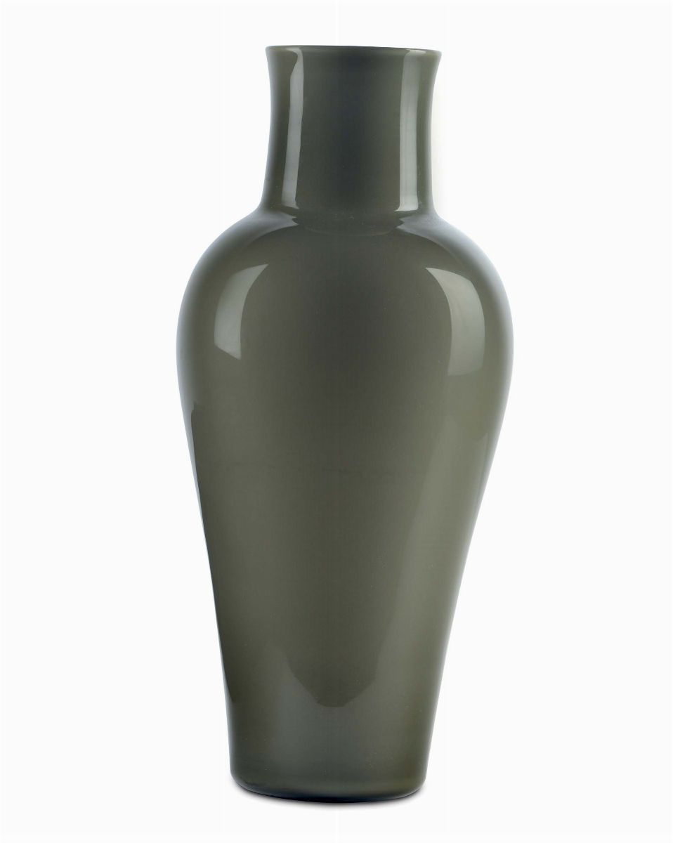 in vetro incamiciato grigio/verde. Sotto la base firma all'acido: Venini, Murano, Italia. Altezza cm 35,5