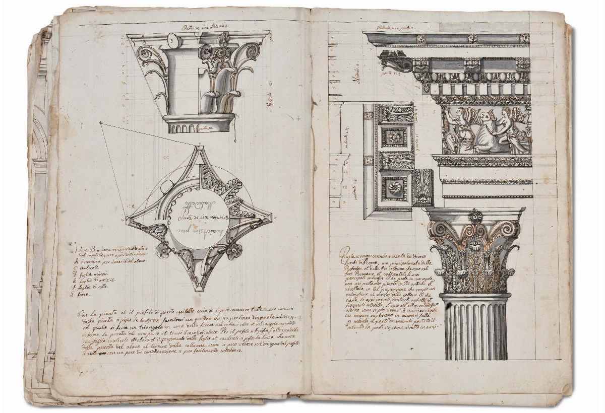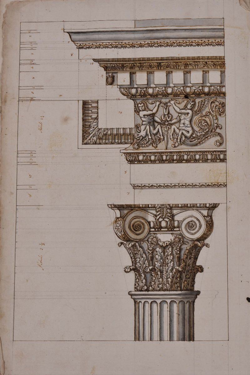 Album contenente disegni con elementi di decorazioni architettoniche, XVIII secolo