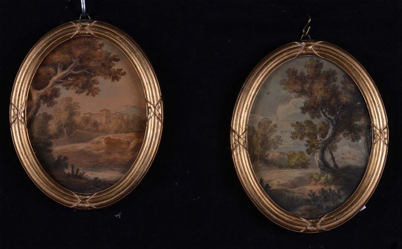 due coppie di acquerelli, cm 22x17 e cm 17x13