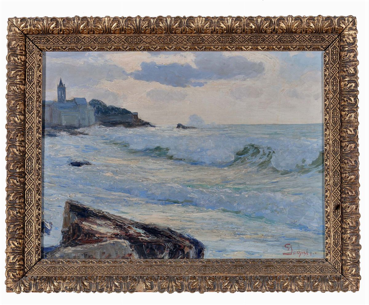 Giuseppe Sacheri (1863-1950) Mareggiata in Liguria