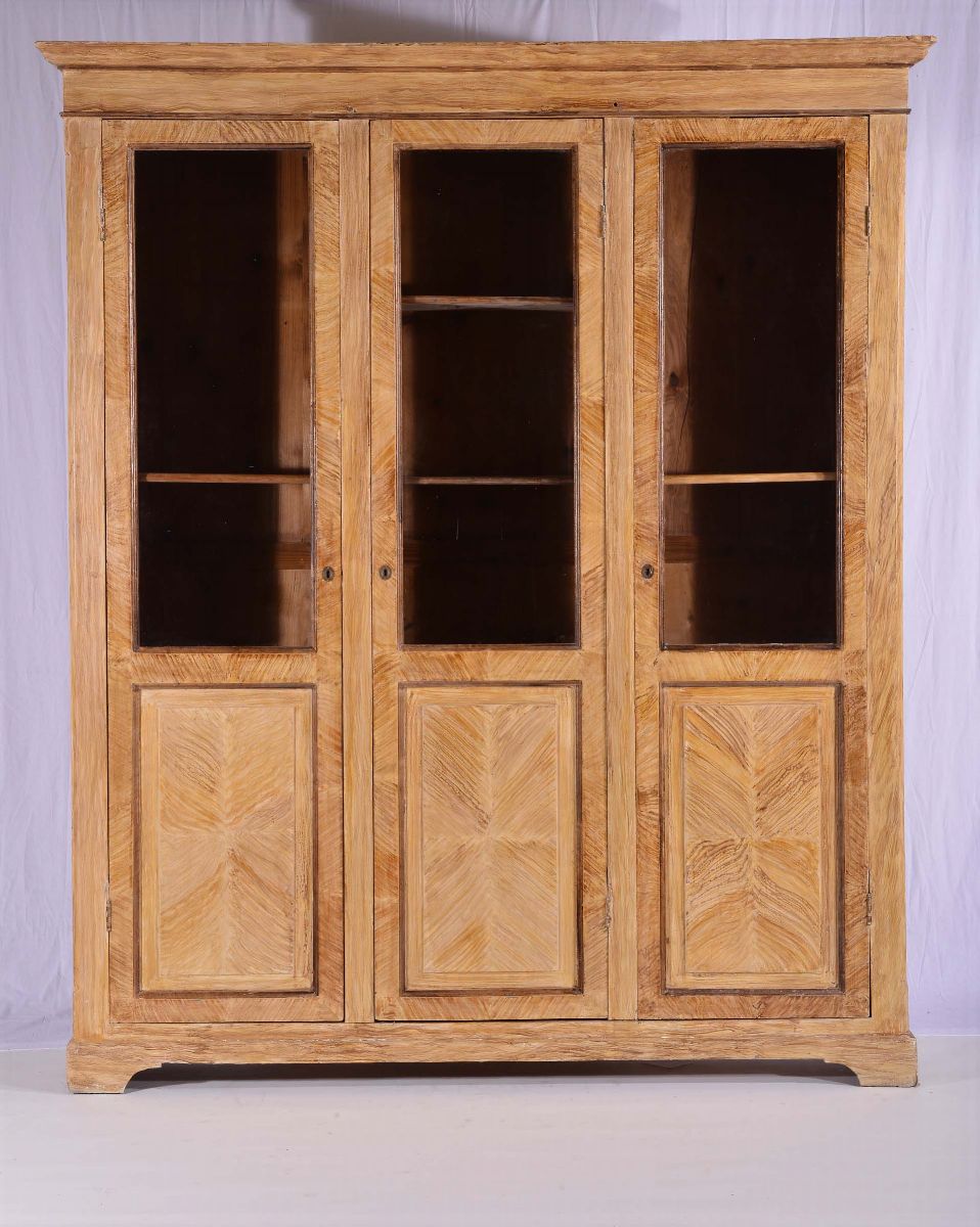 Libreria a tre ante decorata a finto legno, XIX secolo