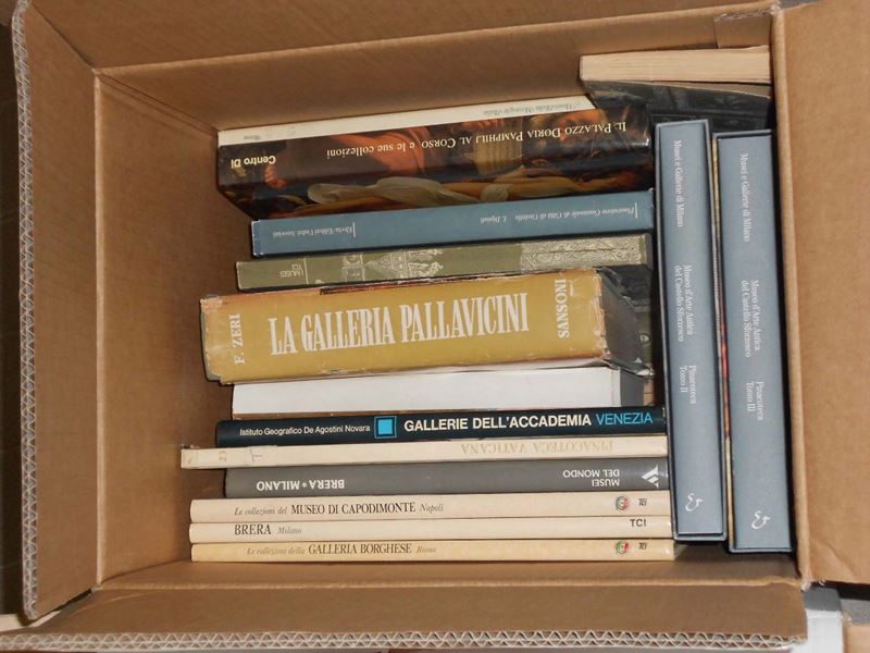 tra cui: Gregori Mina, Uffizi e Pitti, i dipinti delle gallerie fiorentine, ed. Magnus; Zeri Federico, La galleria Pallavicini, ed. Sansoni; nel lotto altri volumi tra cui alcuni ed. Electa