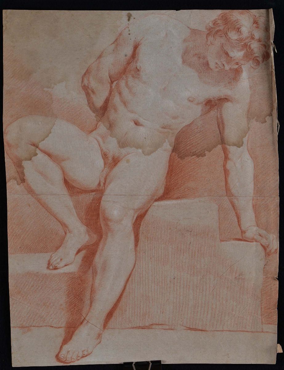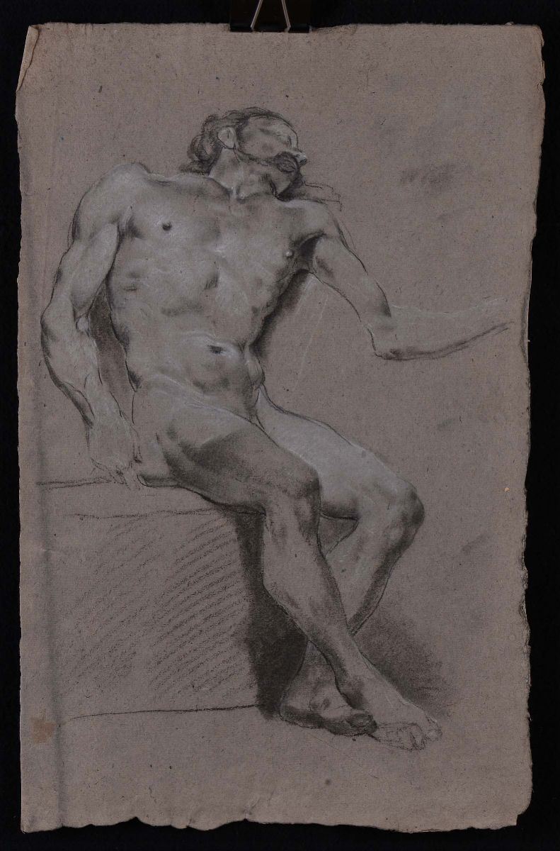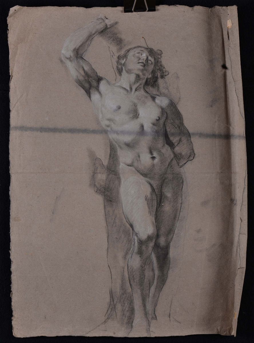 Lotto di disegni raffiguranti nudi e ritratti a matita, sanguigna e carboncino su carta