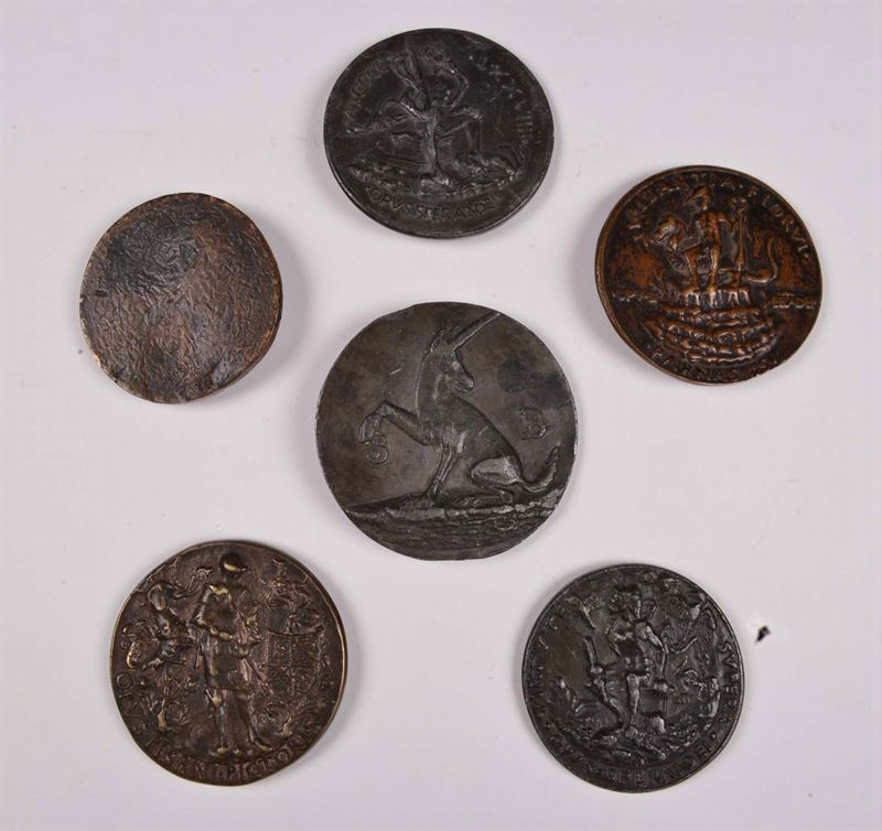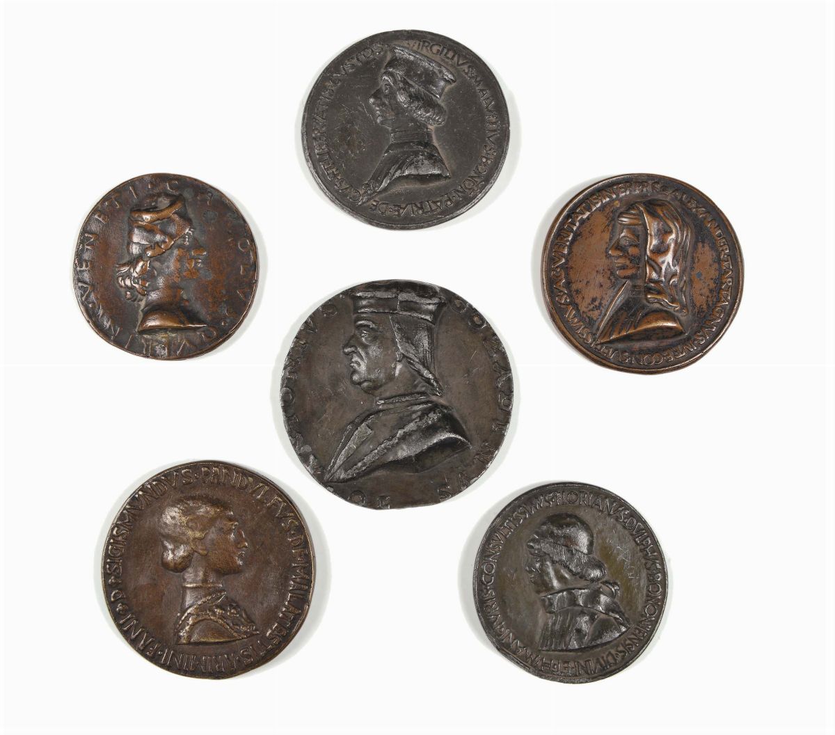 Sei medaglie in bronzo con profili maschili in stile rinascimentale