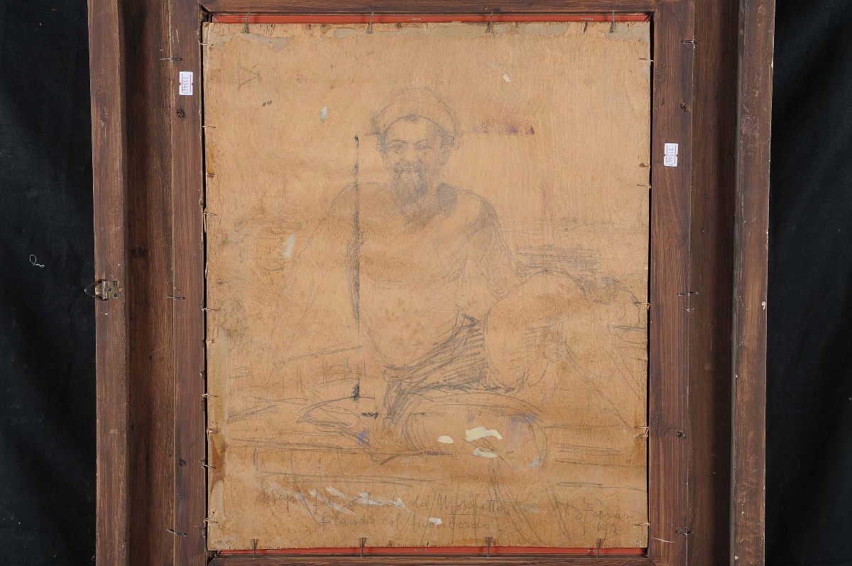 olio su compensato, cm 38x48, firmato in basso a sinistra