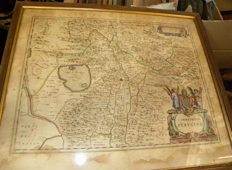 Lotto di stampe acquerellate con carte geografiche
