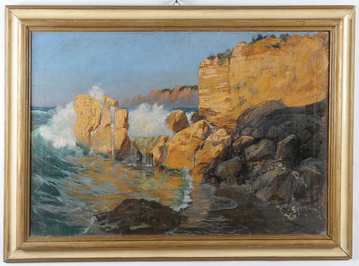 Anonimo del XX secolo Marina con scogli