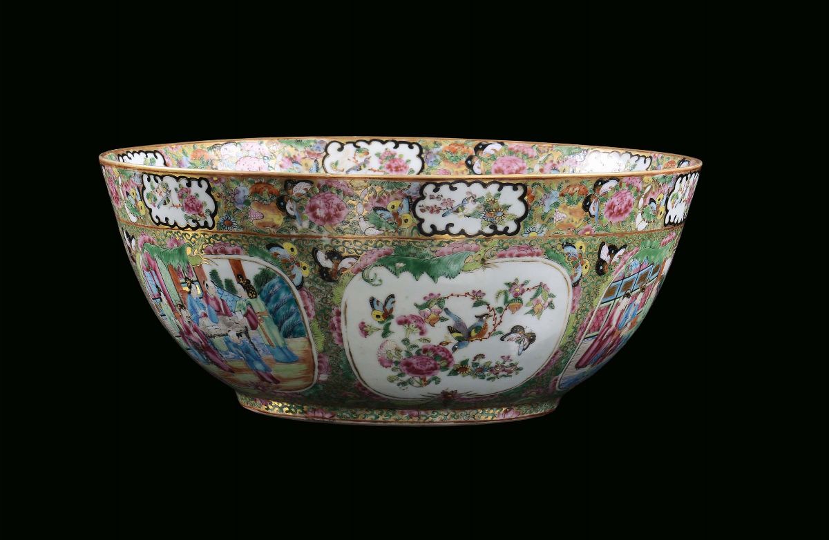 Catino in porcellana con decoro Canton, Cina, Dinastia Qing, fine del XIX secolo