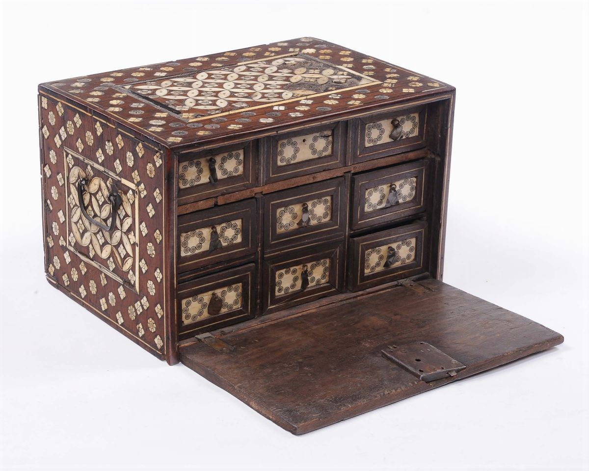 Cofanetto in noce e avorio con decorazioni incise a motivi geometrici, Nord Africa XIX secolo