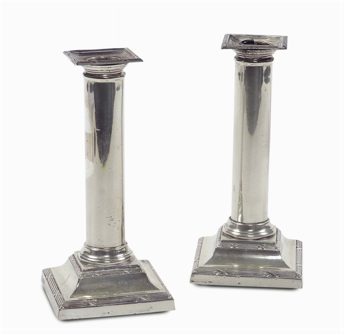 Coppia di candelieri in argento a colonna città di Sheffield 1903