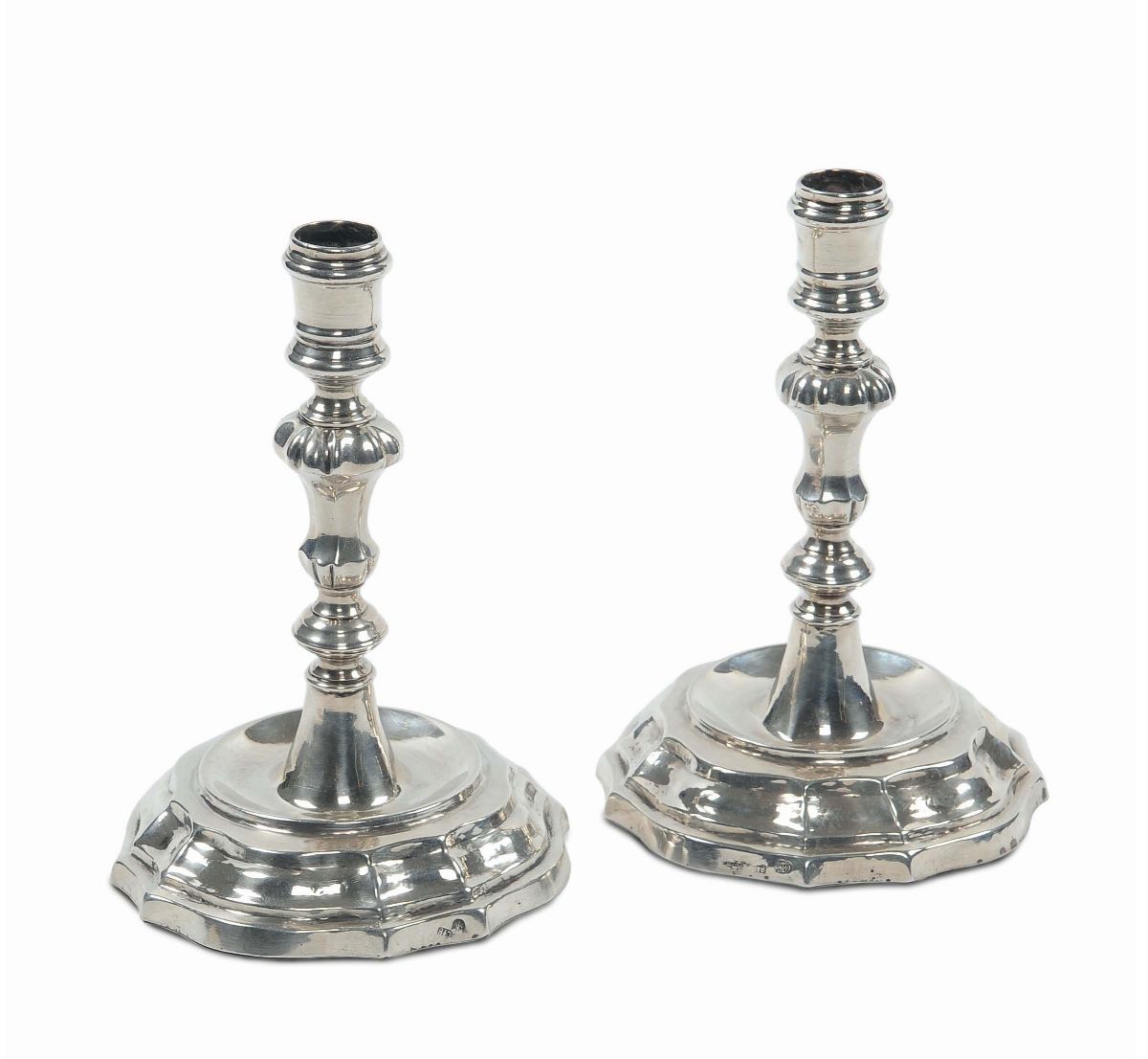 Coppia di candelieri in argento, Roma 1790 – 1810 Carlo Bartolotti