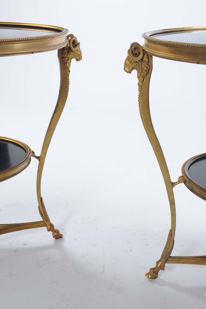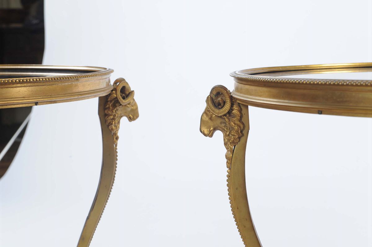 Coppia di tavoli circolari in bronzo dorato Impero, Francia XX secolo