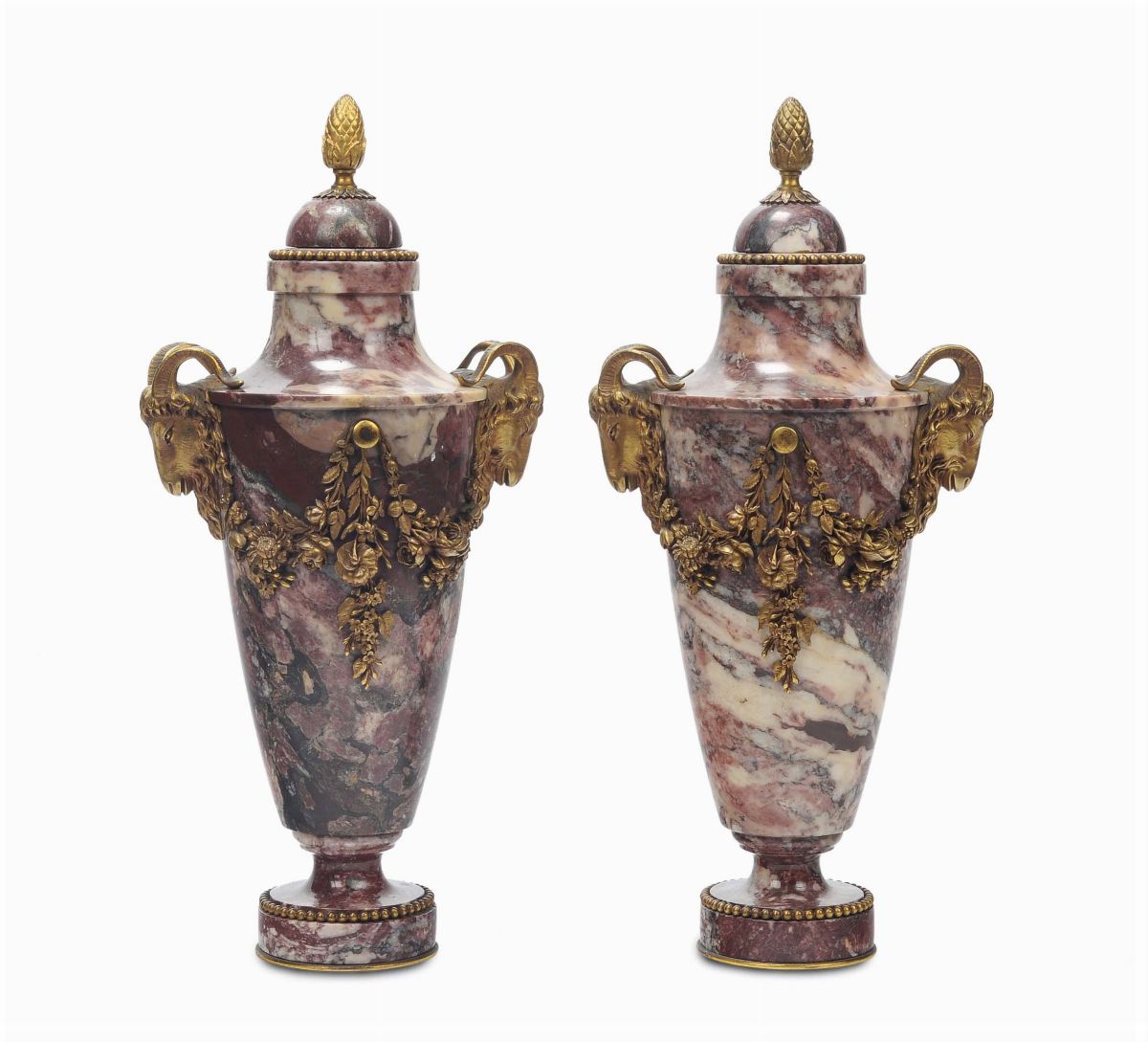Coppia di vasi Impero in marmo e bronzo, inizio del XX secolo