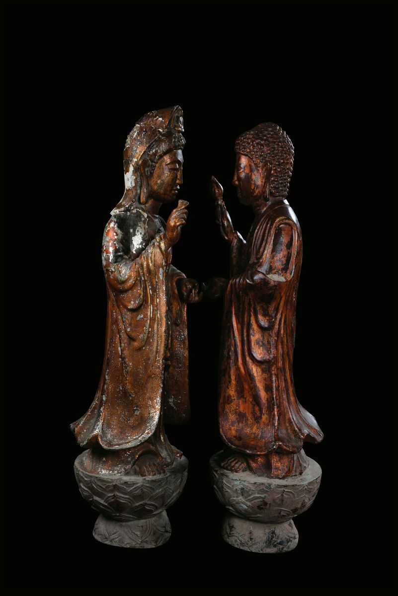 Due Buddha in metallo laccato a finto bronzo, Thailandia XIX secolo