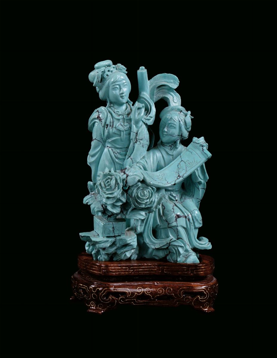 Gruppo con due figurine in turchese, Cina, XX secolo