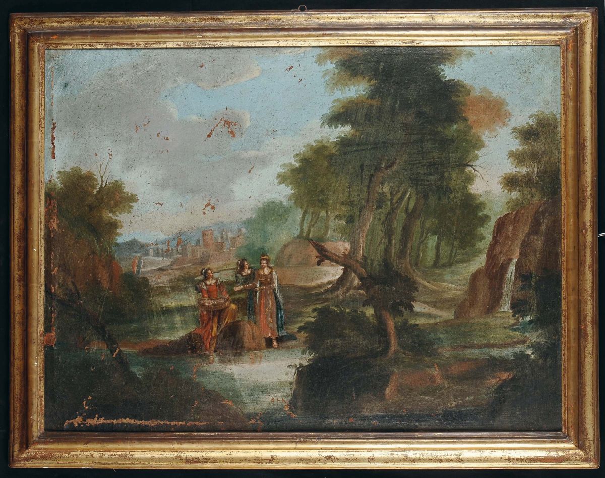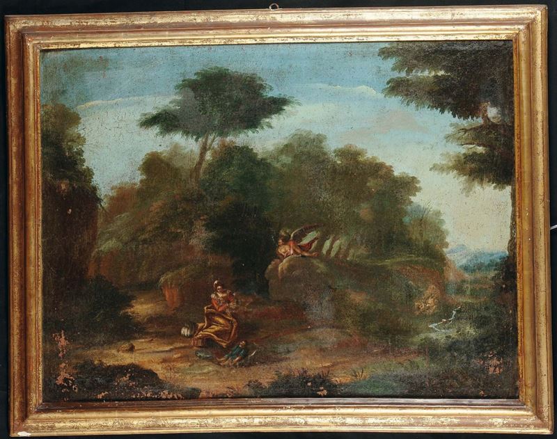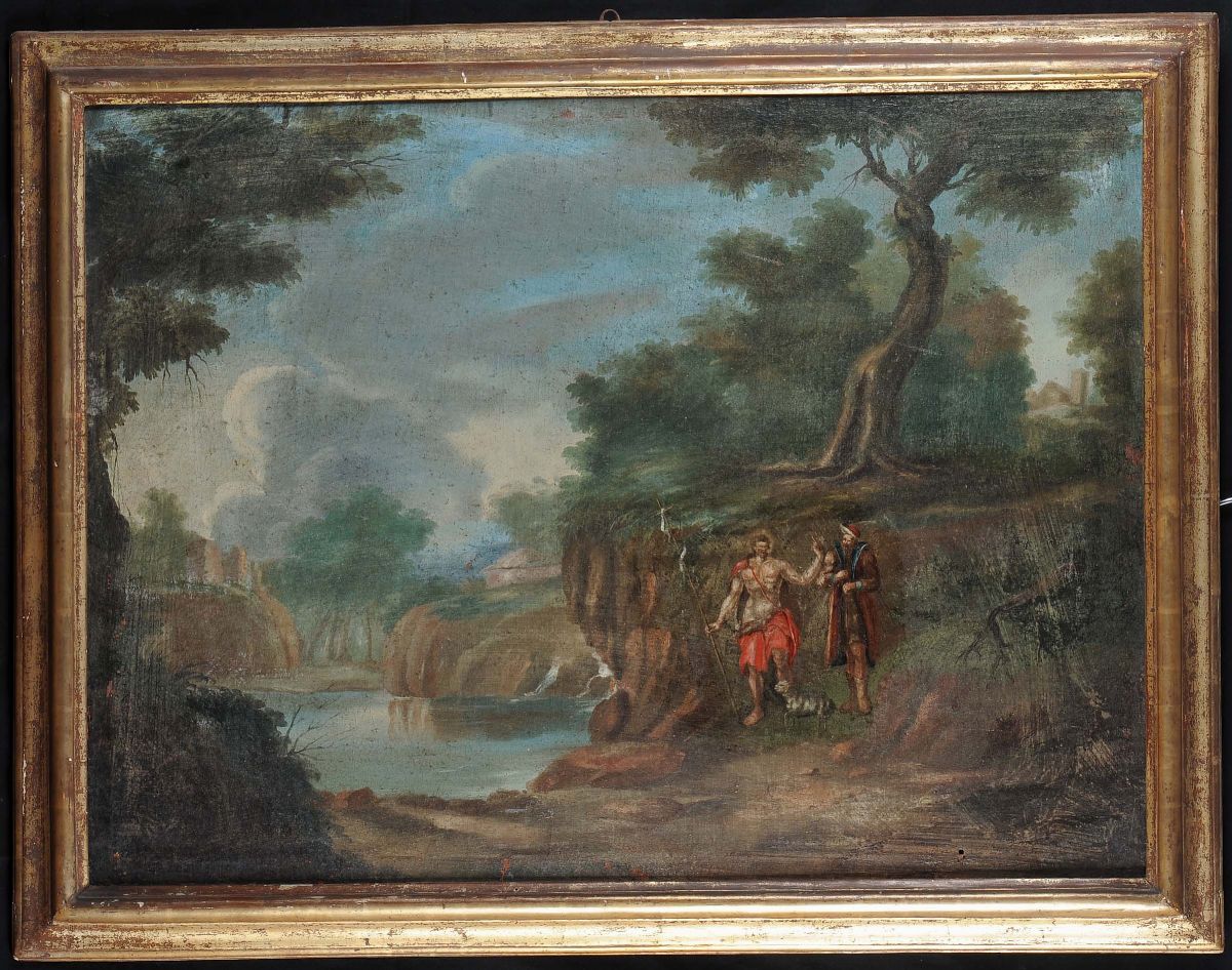 Scuola del XVIII secolo Paesaggi con figure e Santi
