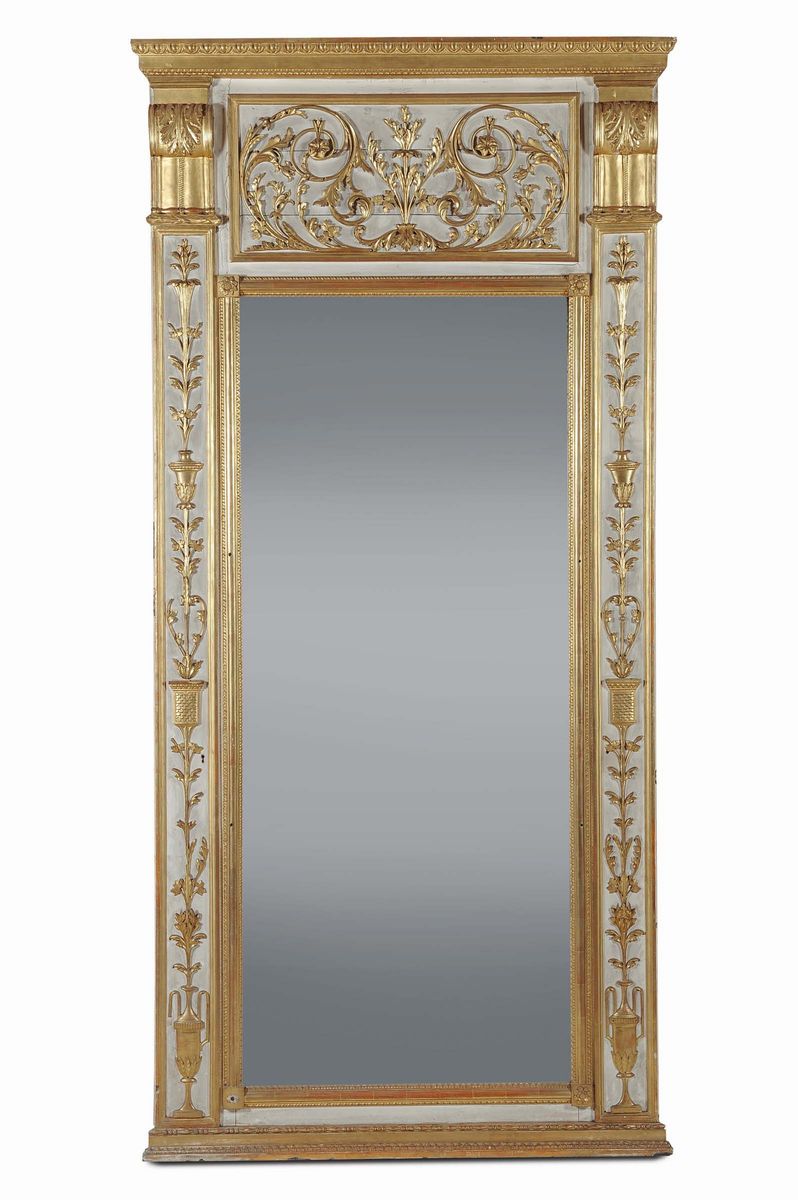 Specchiera Luigi XVI in legno laccato e dorato, XVIII secolo