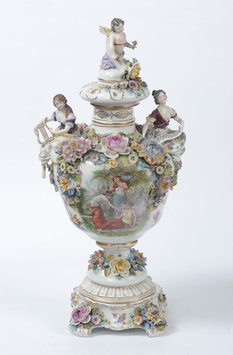 Vaso in porcellana con decorazione policroma con fiori in rilievo