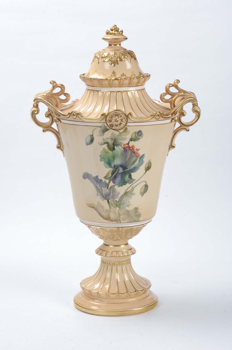 Vaso in porcellana rosa con decoro floreale