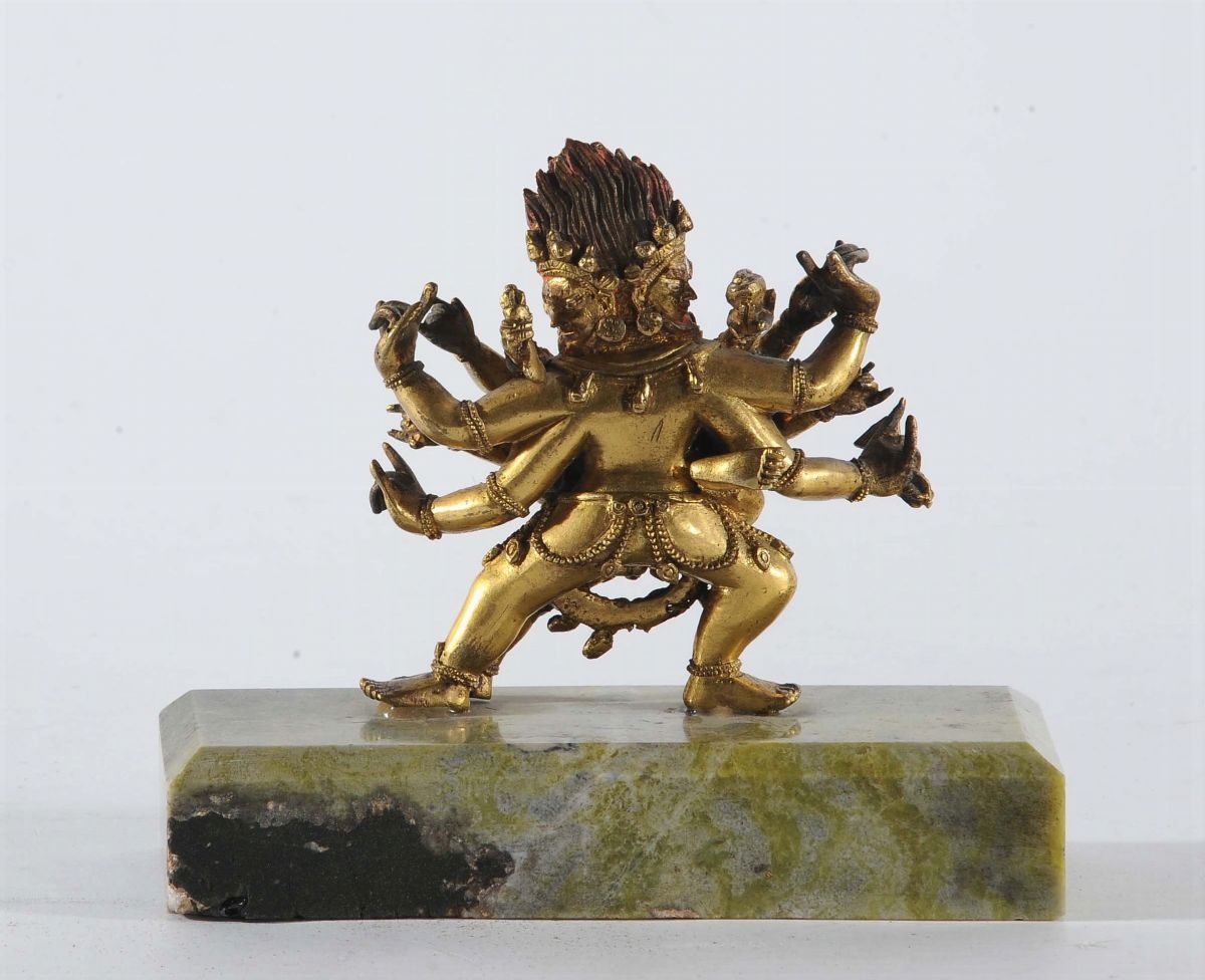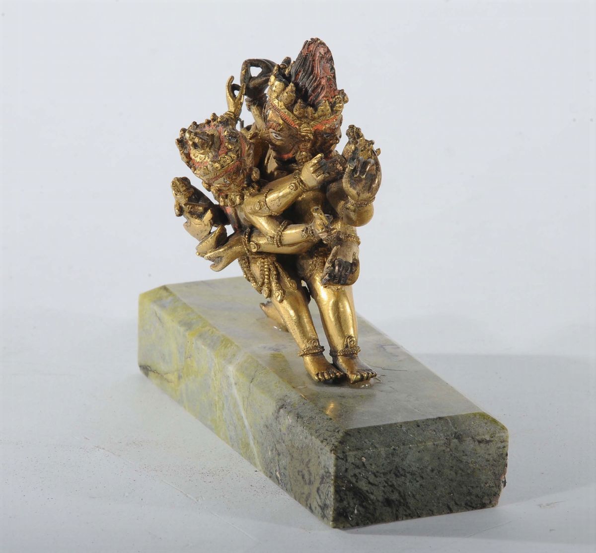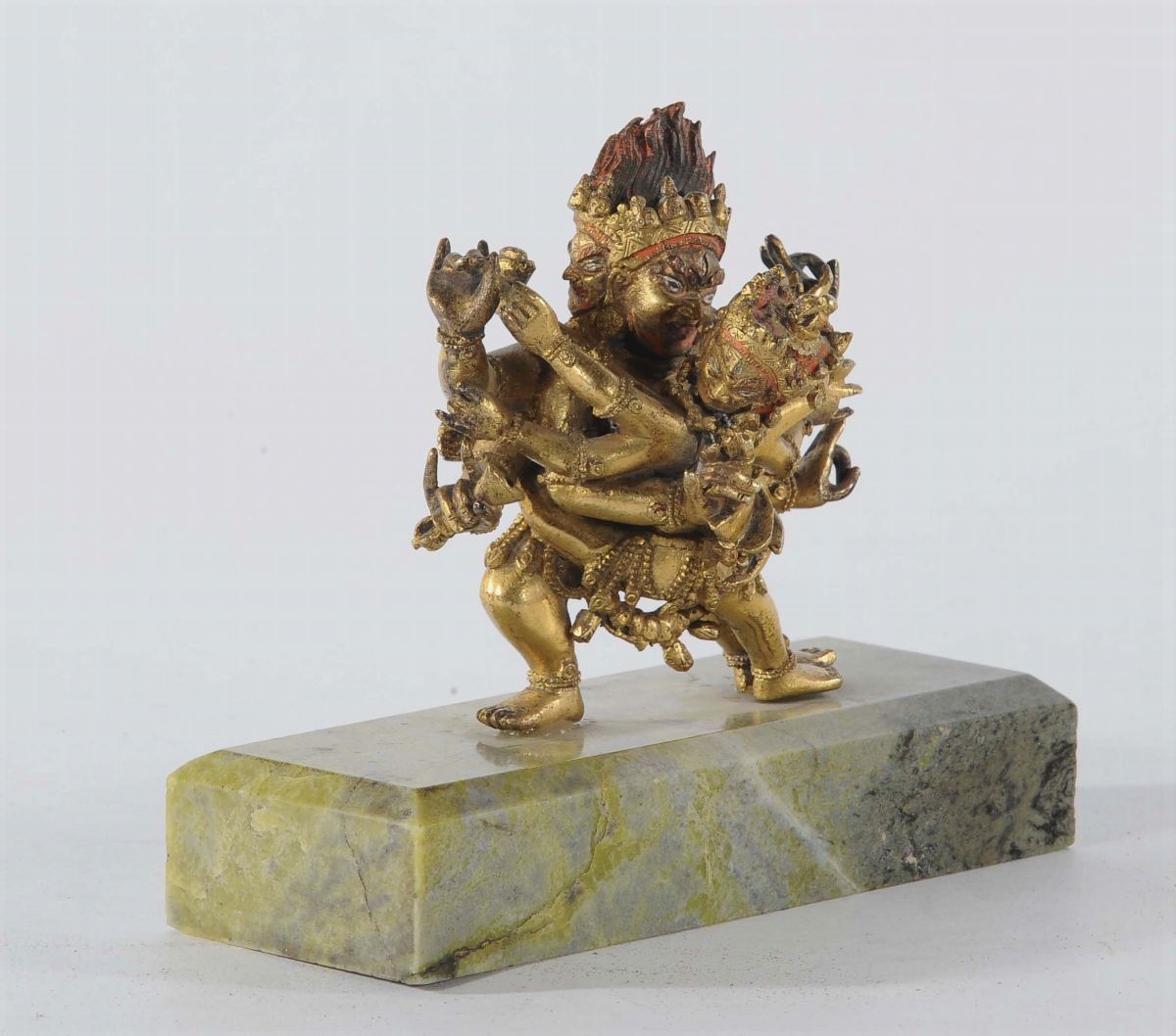 Yamanthaka in bronzo dorato sopra basetta in marmo, Cino-Tibet XVII secolo