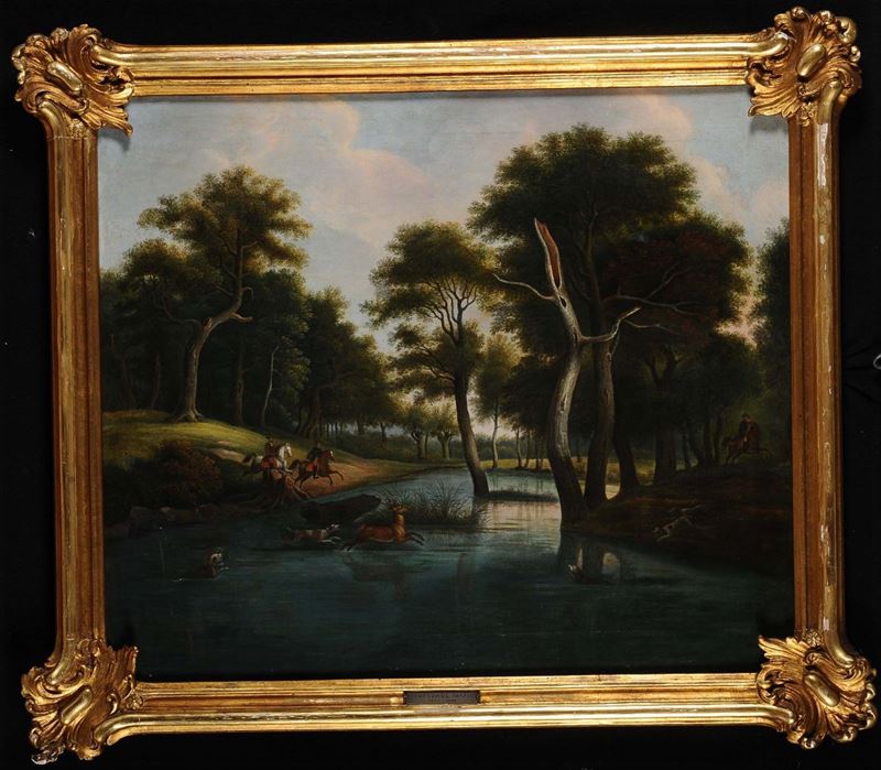 Anonimo della fine del XVIII secolo Scena di caccia al cervo