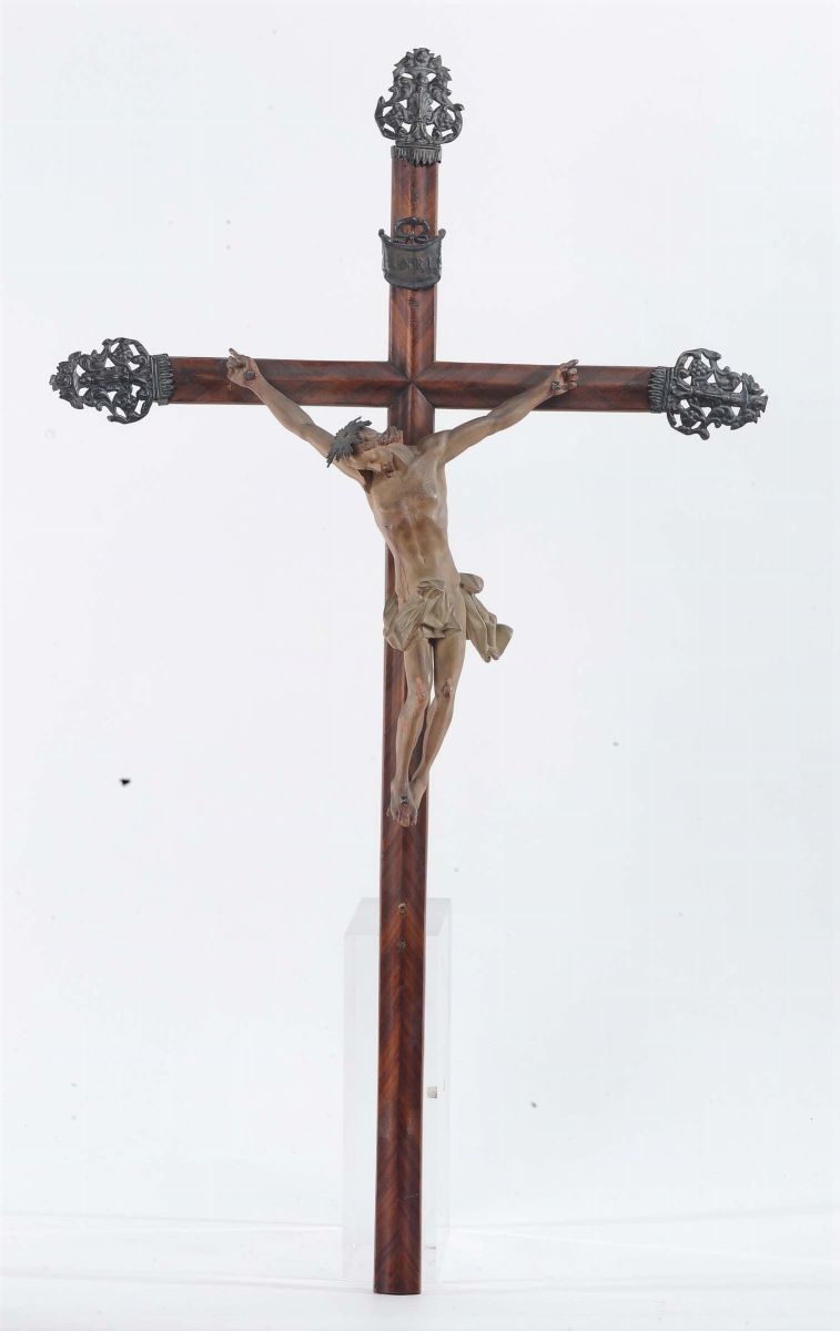 Crocifisso in legno intagliato e laccato
