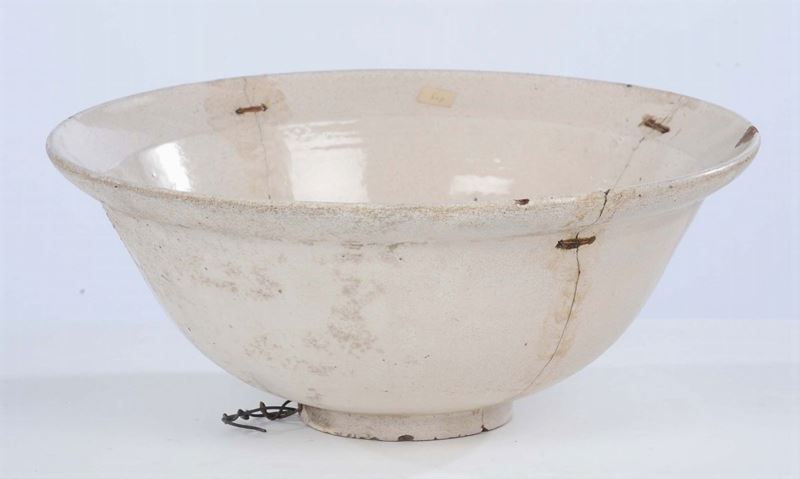 diametro cm 44,5 nel lotto ciotola toscana in porcellana bianca, diametro cm 38 (rotture)