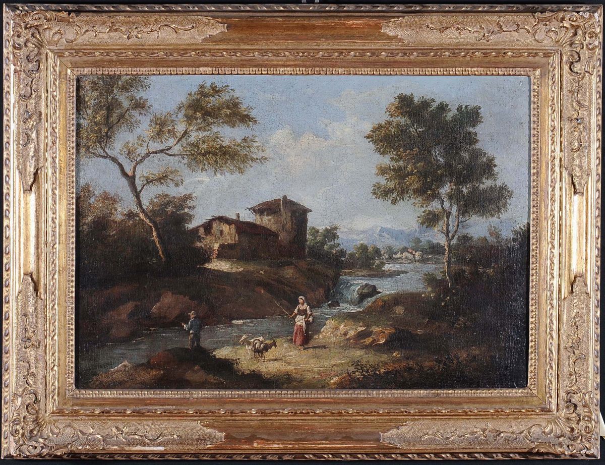 Giuseppe Zais (Forno di Canale 1709 - Treviso 1784), nei modi di Paesaggio rurale con contadina