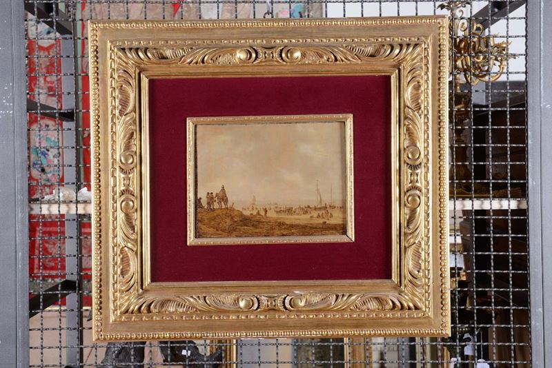 Jan Van Goyen (Leida 1596 - L’Aia 1656) Paesaggio costiero con figure