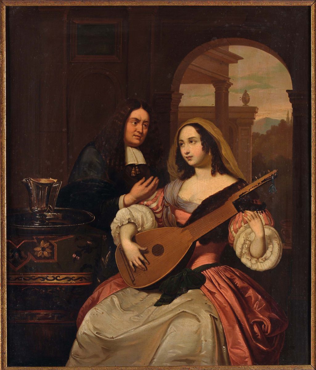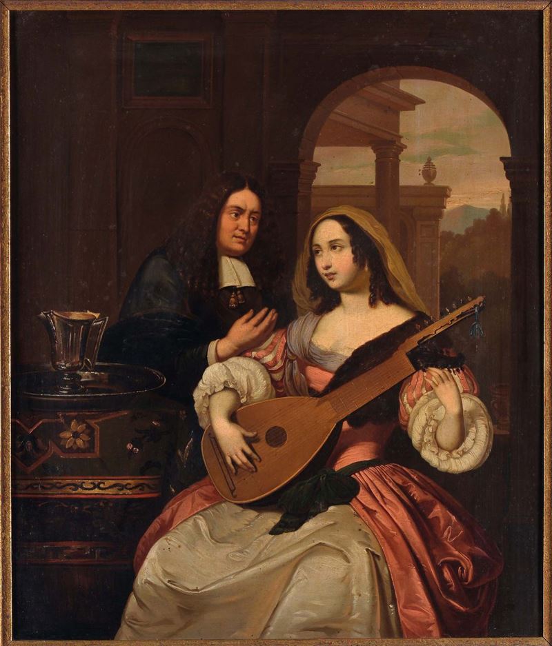 Scuola Fiamminga del XIX secolo Scene galanti con liuti