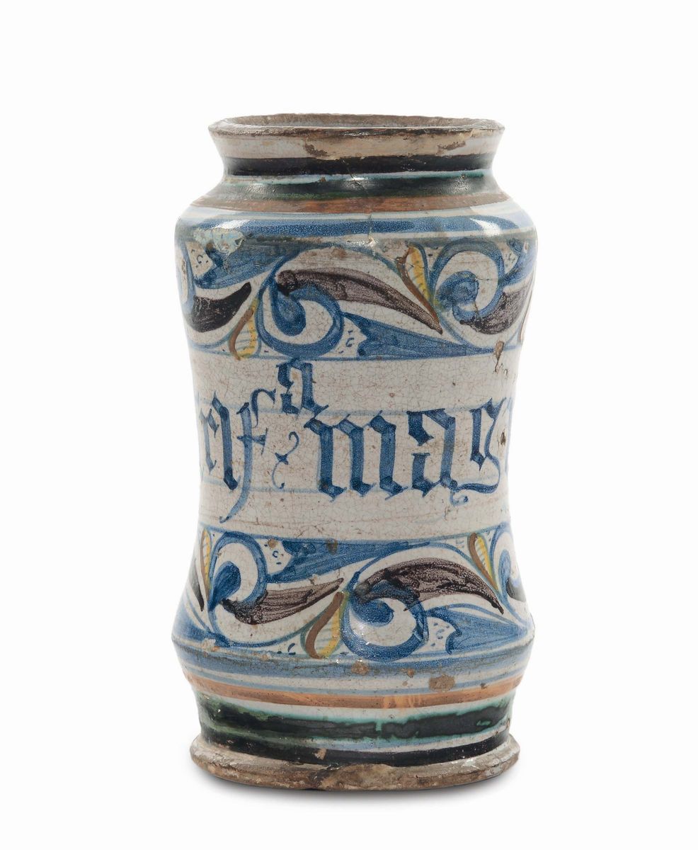 Albarello di farmacia in maiolica, Asciano XVI secolo