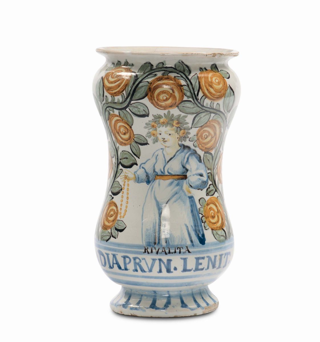 Albarello in maiolica con figura allegorica, Castelli XVII secolo?