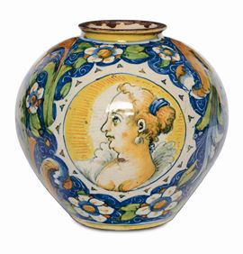 Boccia in maiolica con decoro a doppio medaglione, Venezia XVI secolo