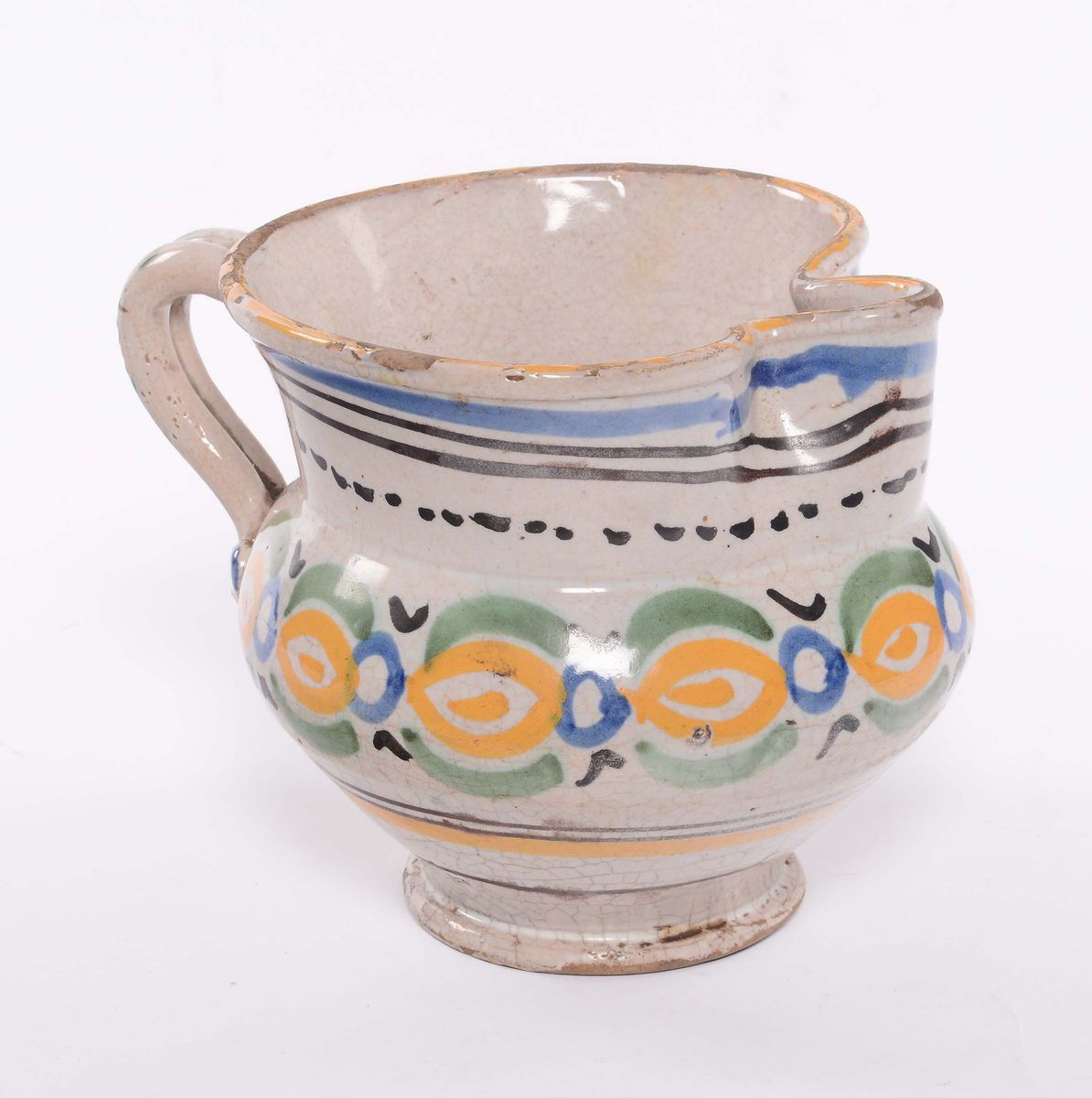Brocca in maiolica a decoro policromo, Velletri XIX secolo