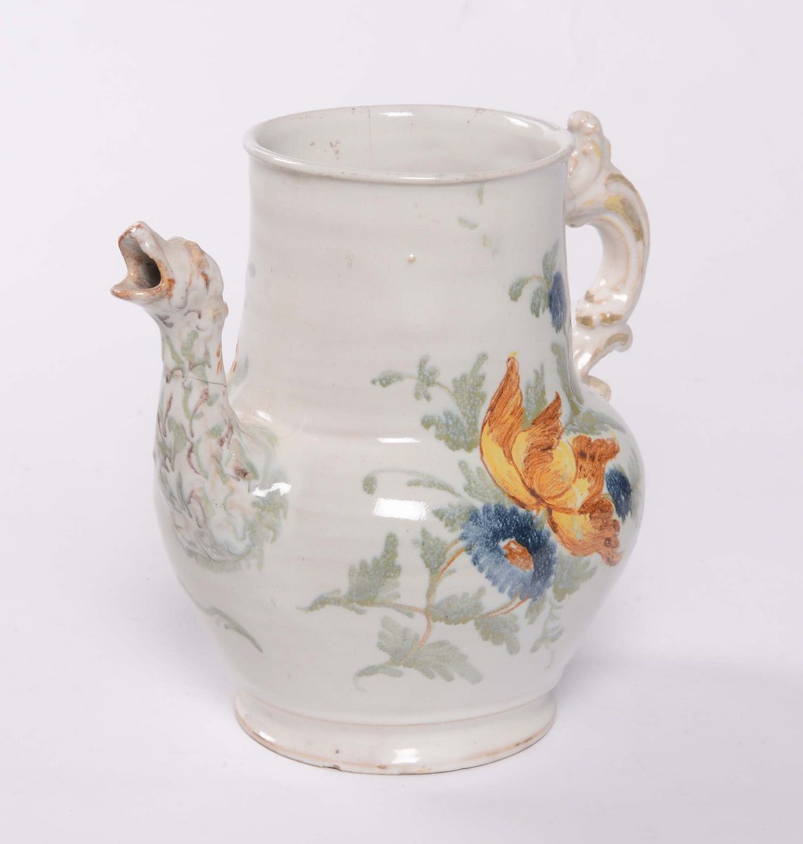 Caffettiera in maiolica a decoro policromo floreale, Savona XVIII/XIX secolo