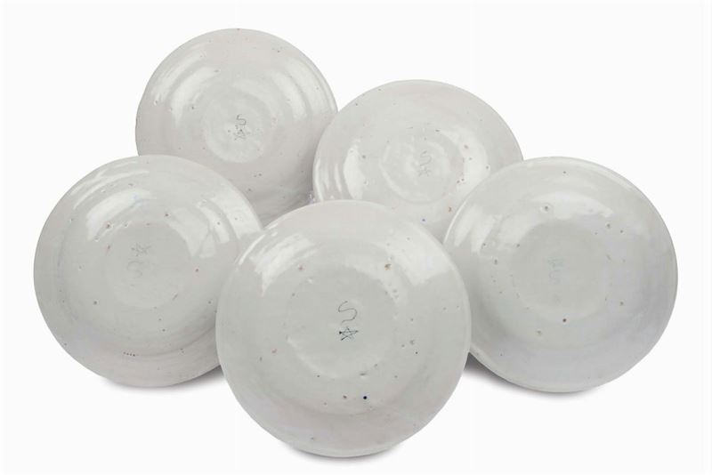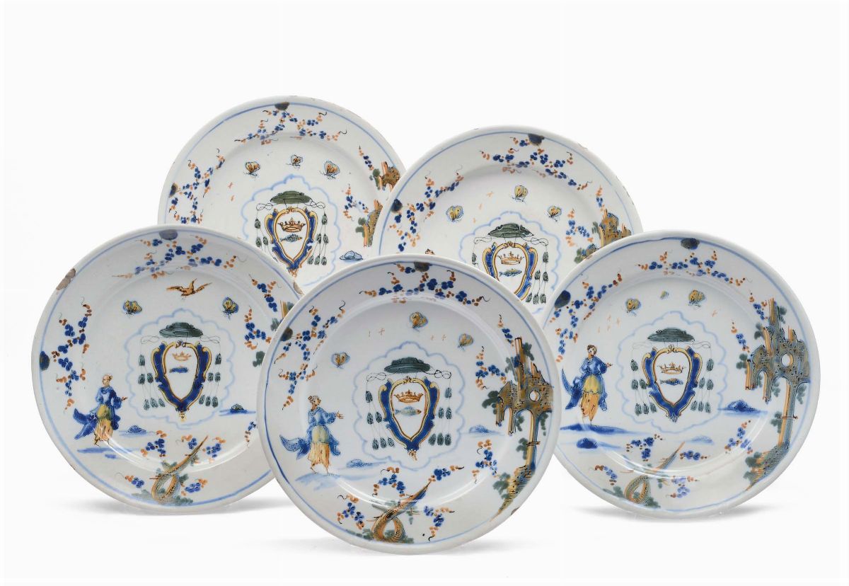 Cinque piatti in maiolica con stemmi, Albisola XVIII secolo