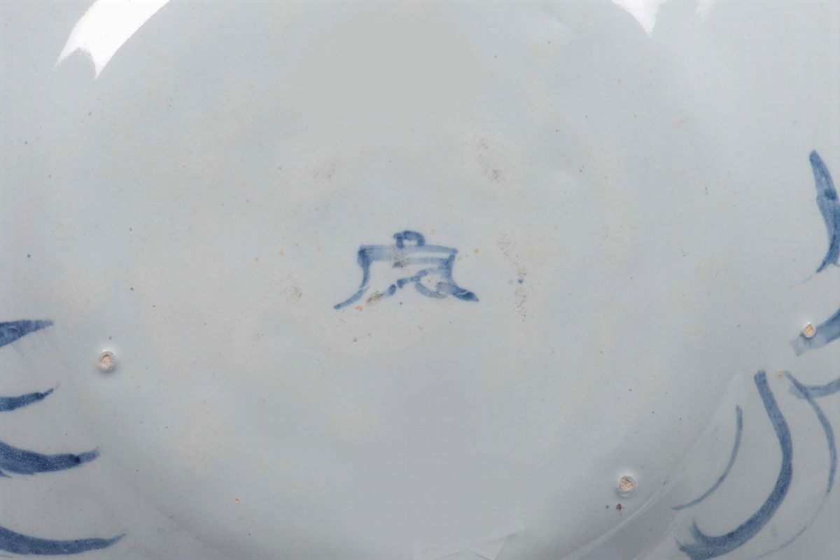 decoro con fauni entro paesaggio a reggere stemmi policromi, marca Fortezza, diametro cm 22 (sbeccature)