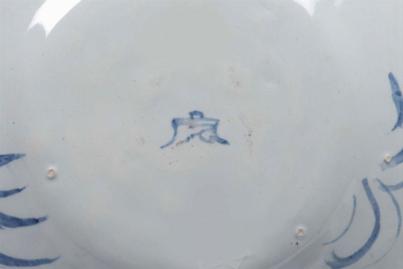 Coppia di piatti in maiolica con decoro “a scenografia barocca”, Savona XVII secolo