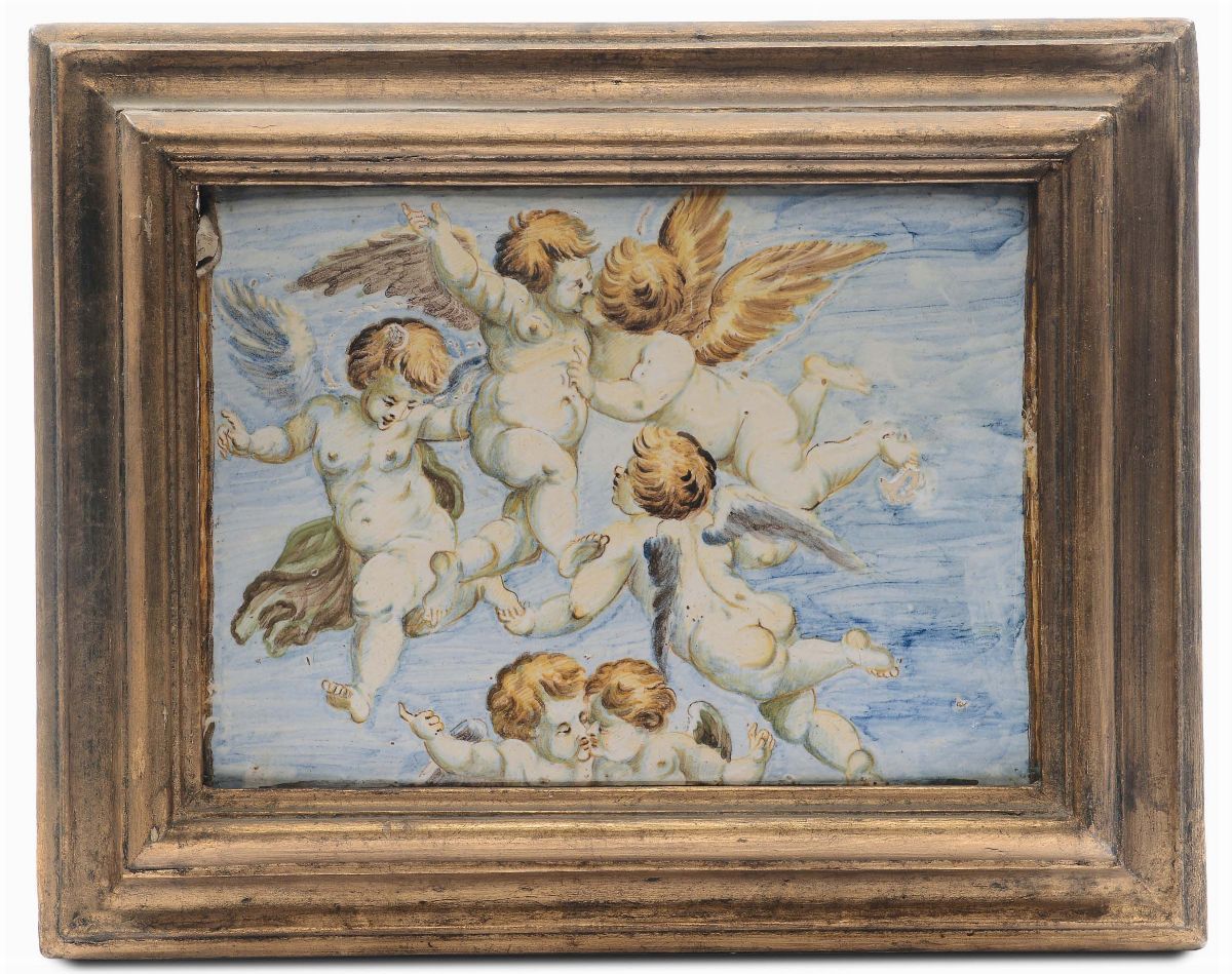 Mattonella in maiolica raffigurante putti, Castelli XVIII secolo