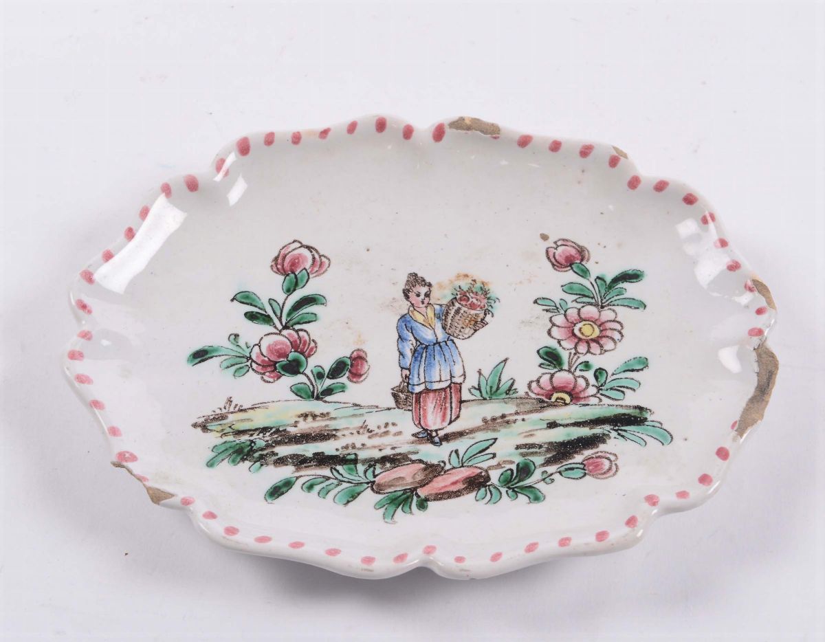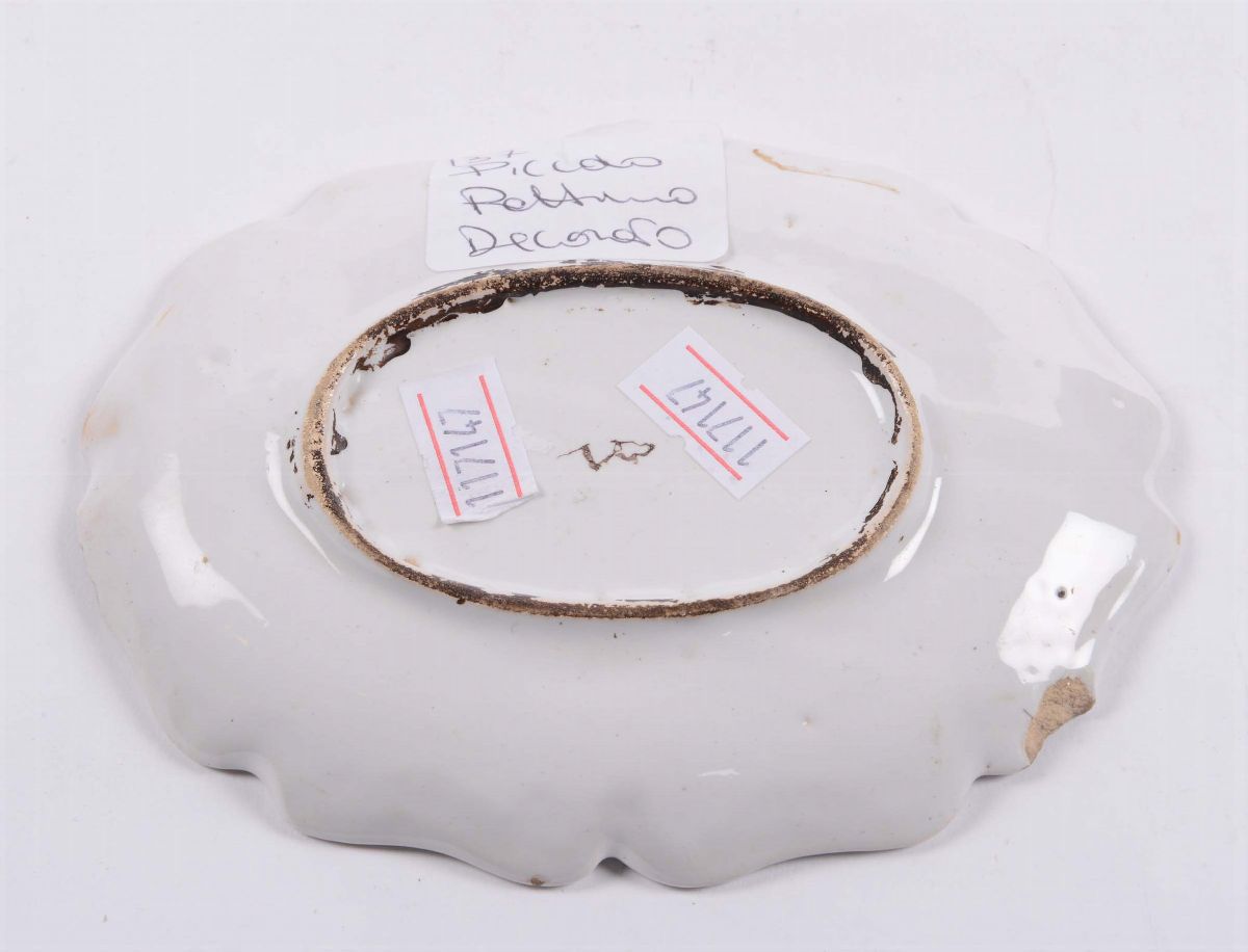 Piattino in maiolica a decoro policromo, Veuve Perrin, Marsiglia, imitazione del XIX/XX secolo