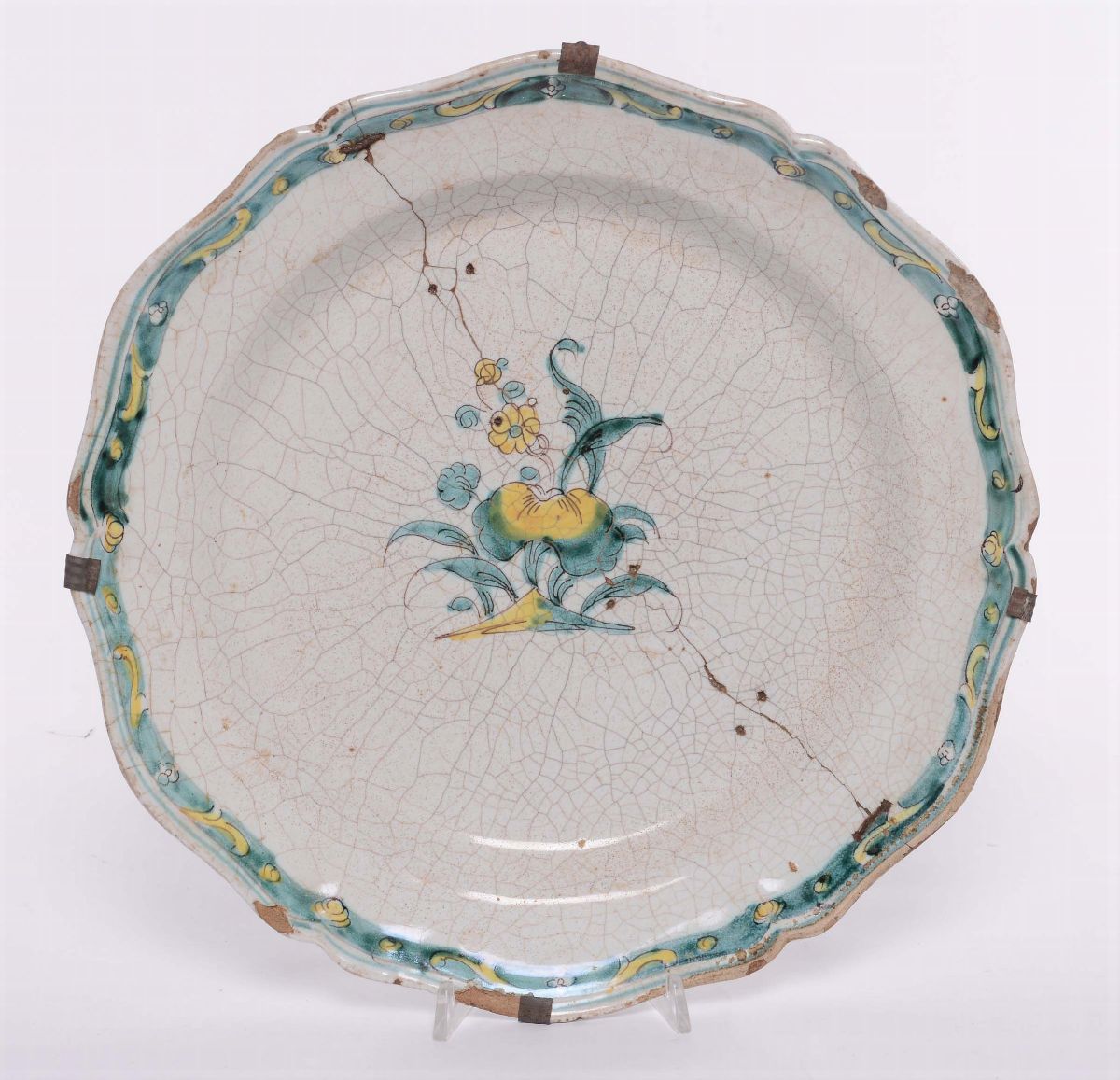 fiori al centro del cavetto, tesa sagomata, diametro cm 35 (restauri)