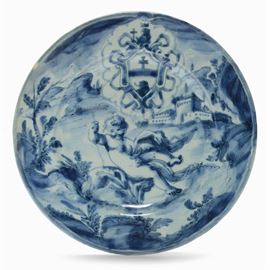 Piatto in maiolica decorato “a scenografia barocca”, Savona XVIII secolo