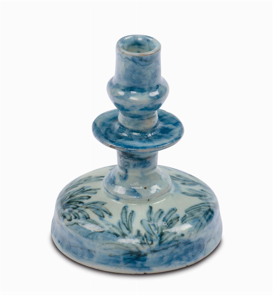 Piccolo candeliere in maiolica con decoro bianco e blu Savona XVIII secolo (?)